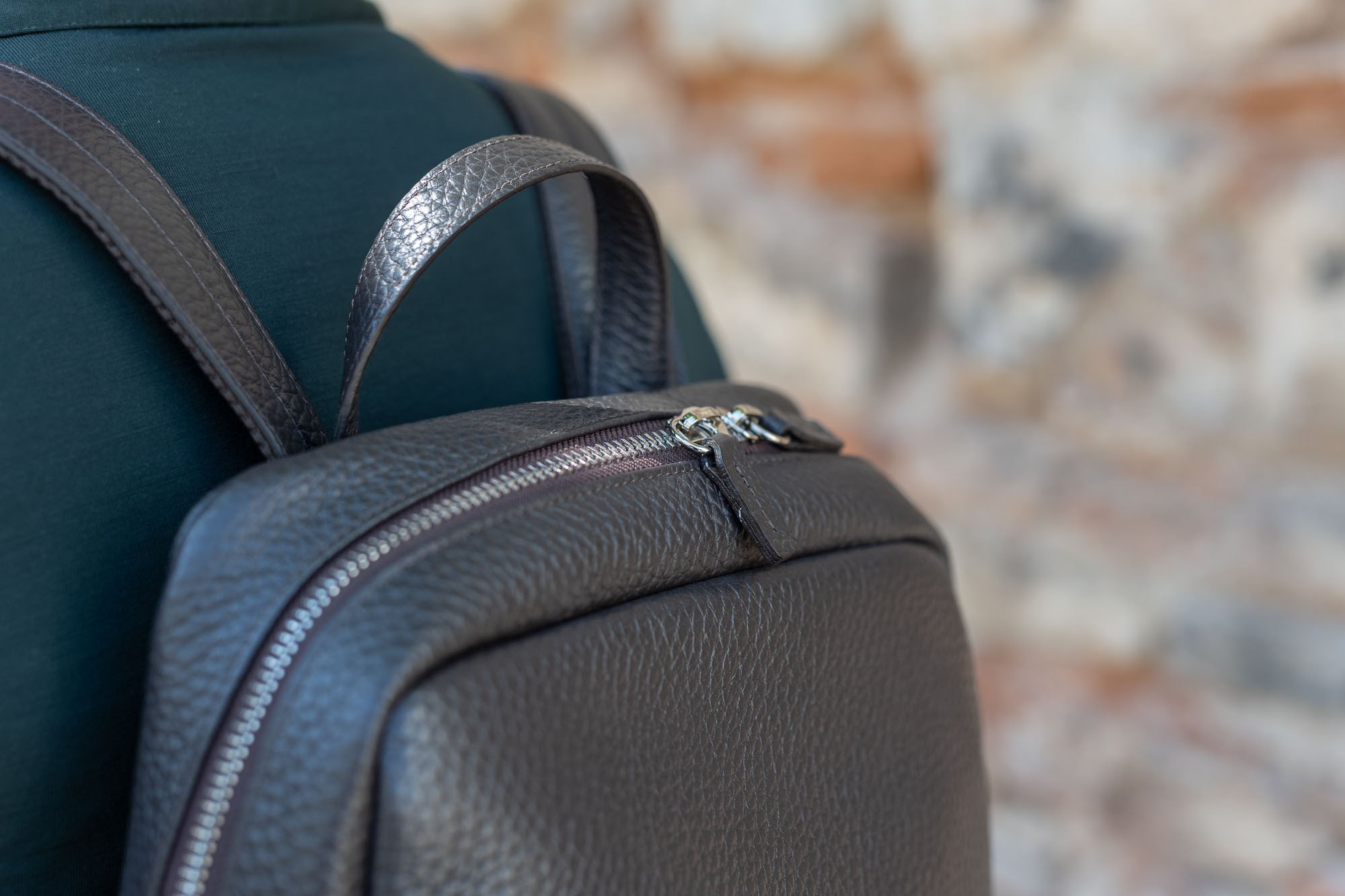 Odolný materiál – pevný kožený povrch, který chrání obsah před odřeninami a lehkým deštěm.